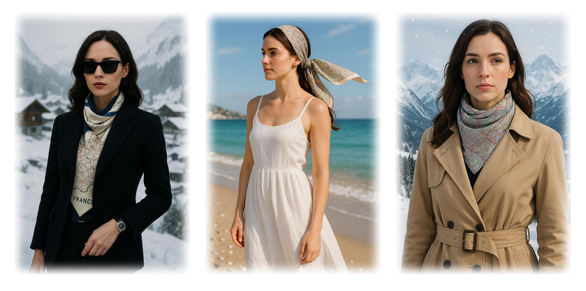 -Tour de cou carte, dimensions 45cm x 45cm = 22,90€ TTC