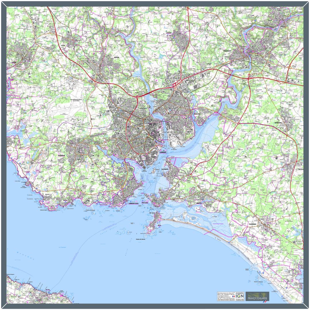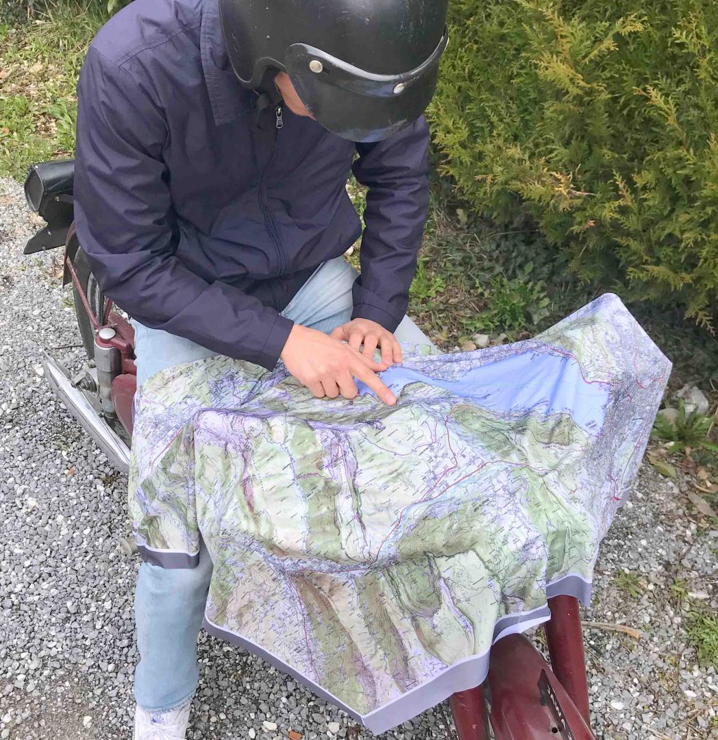 L’image cartographique, issue des données IGN, est imprimée sur un tissu 100% polyester très résistant de 85 x 85 cm (ourlet de type bourdon fin).