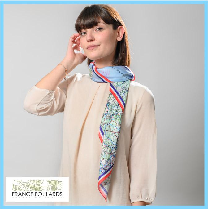 Votre Foulard-Carte de la France, de votre département, de votre secteur, avec votre logo et votre personnalisation!